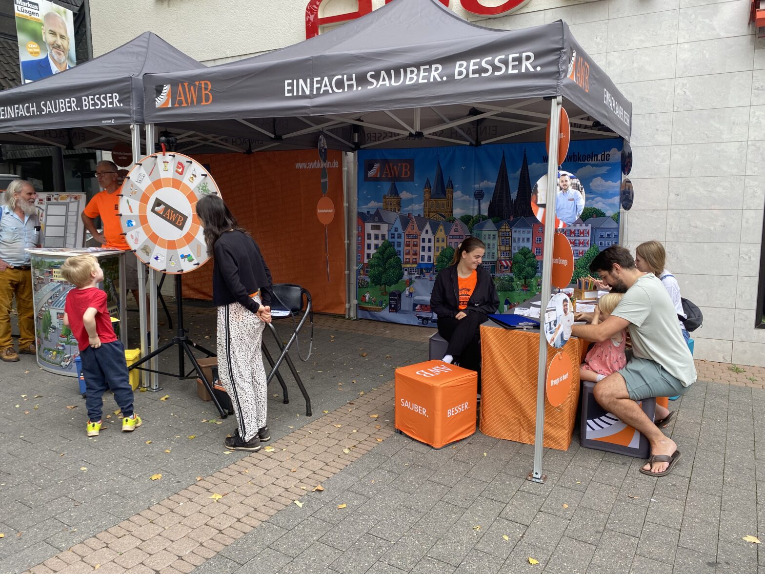 Auch 2025 waren wir wieder mit unseren Beratungsständen vertreten – diesmal in Porz. Mit interaktiven Mitmachaktionen und erlebnisreichen Spielen haben wir Besucher*innen jeden Alters für die Themen Wertstofftrennung, Abfallvermeidung und Stadtsauberkeit begeistert.
